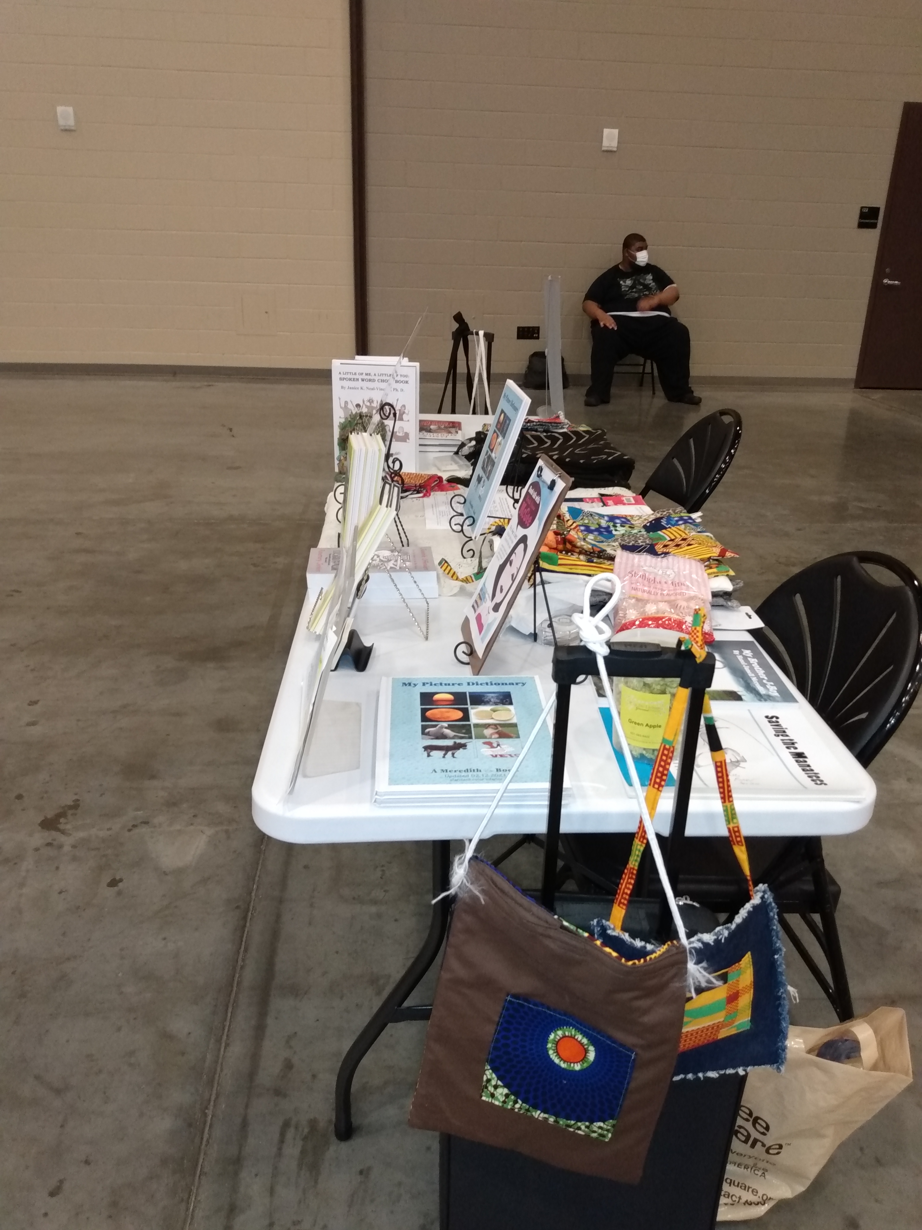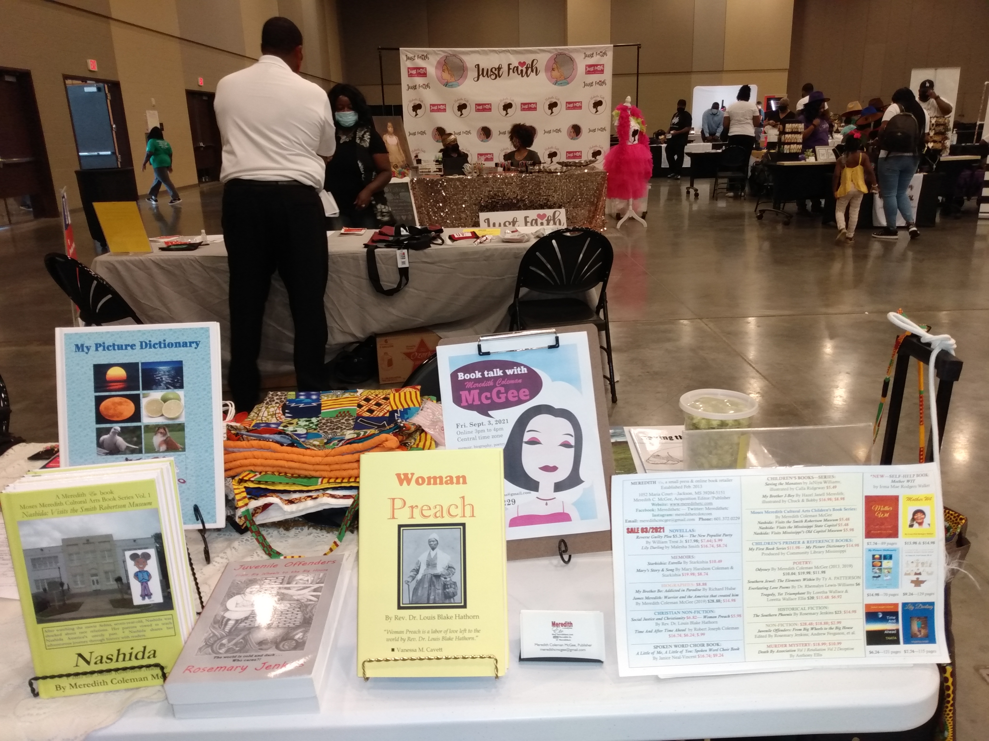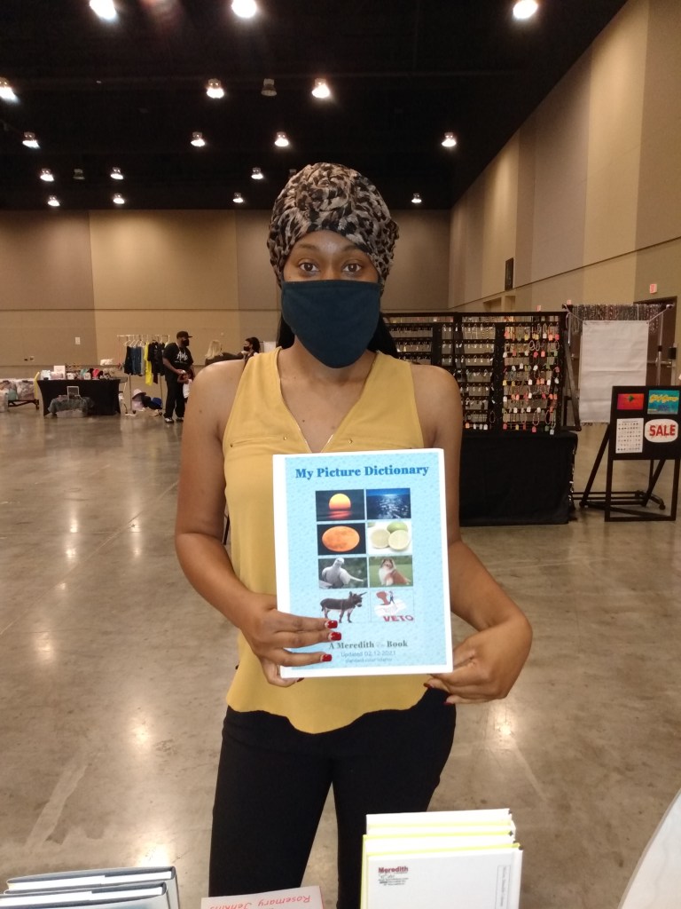 My Picture Dictionary in the hands of early learnersMy Picture DictionaryMother Wit in the hands of a new Mississippi reader Mississippi Black Business Vendor displays her new tote made by Hazel Janell Meredith (Hall)Gwen Mayberry take home Woman Preach by the late Rev. Louis Blake HathownMississippi Black Business Expo Vendor Meredith Etc
